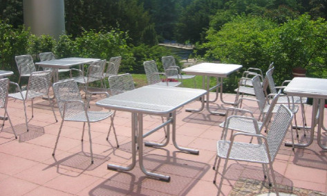 Металические столы и стулья для уличных кафе.